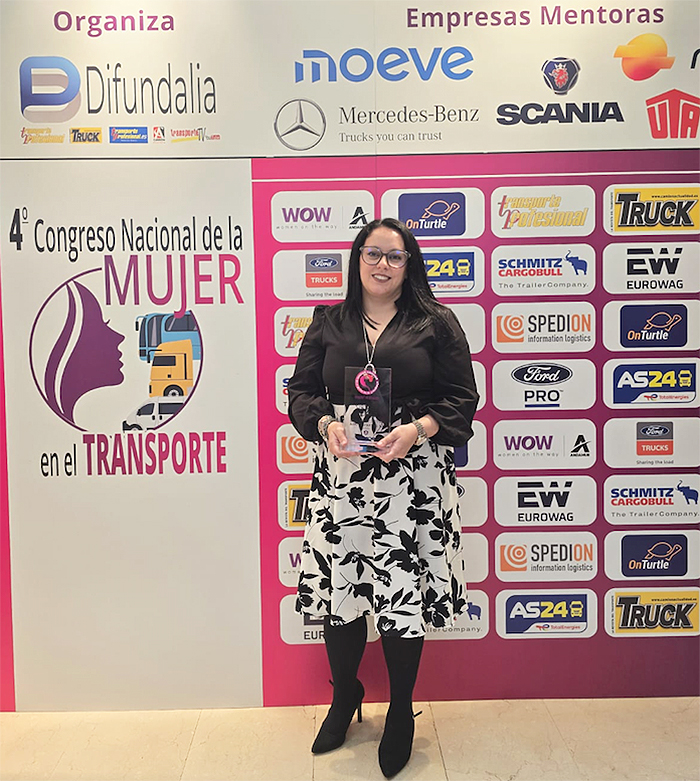 O premio “Impulsora da Traxectoria Empresarial” foi para Beatriz García, directora executiva de SPEDION España desde 2019. No discurso previo á entrega do galardón, a directora comercial da revista especializada Transporte Profesional, Nieves González, destacou que “hoxe celebramos non só unha traxectoria profesional a unha muller exemplar, se non tamén a historia dunha persoa que encarna o espírito do esforzo, a proximidade e a alegría en todo o que fai. Levaba uns anos no sector cando nos coñecemos, e ela xa demostraba unha ilusión e unha curiosidade de quen está disposta a aprendelo todo. En apenas uns anos, demostrou que o liderado non entende de antigüidade, se non de visión, compromiso e humanidade. Desde Galicia conseguiu dirixir con brillantez a unha empresa que non só reporta a Alemaña, se non que tamén inflúe en decisións estratéxicas como o deseño dos dispositivos que facilitan a telemática para camións e semirremolques. E todo iso sen perder nunca o seu sorriso. A súa enerxía é contaxiosa, a súa capacidade para inspirar aos demais admirable, e agora, ademais, engade a esta lista de logros o ser nai por segunda vez. Demostrando que se pode equilibrar con valentía e tenrura a vida profesional e a vida persoal”.