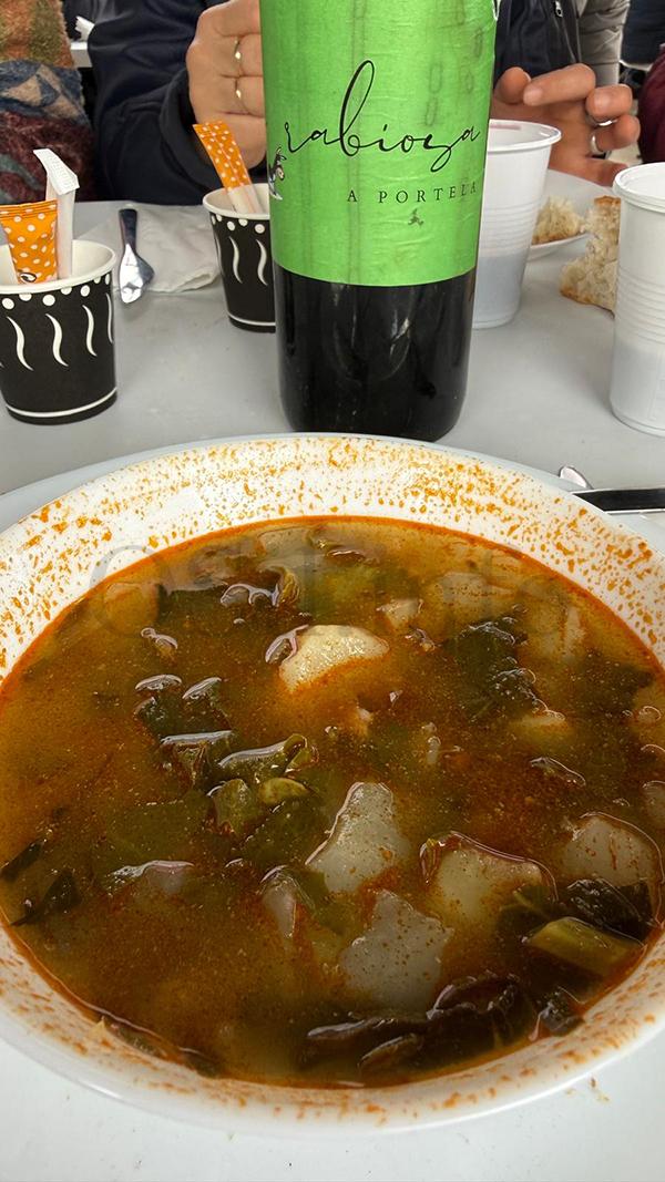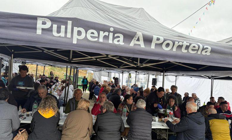 A praza da localidade da Portela de Portomourisco (Petín-Larouco) convertíase no mediodía deste 14 de marzo en escenario da IV Festa do Caldo. A partir das 14h., nunha carpa instalada no lugar, dábanse cita unhas 200 persoas que degustaban un menú a base de “caldo a esgalla”, carne do caldo, sobremesa, viño, auga, rematando con café de pota e licores.