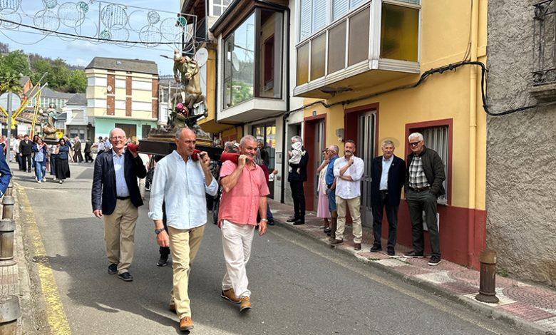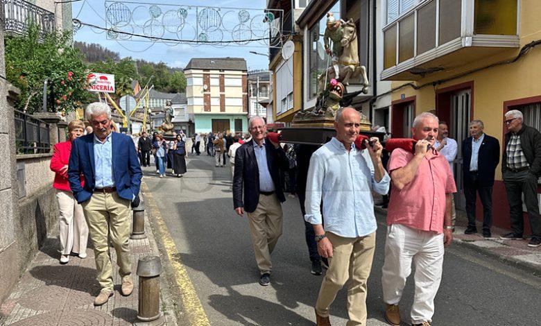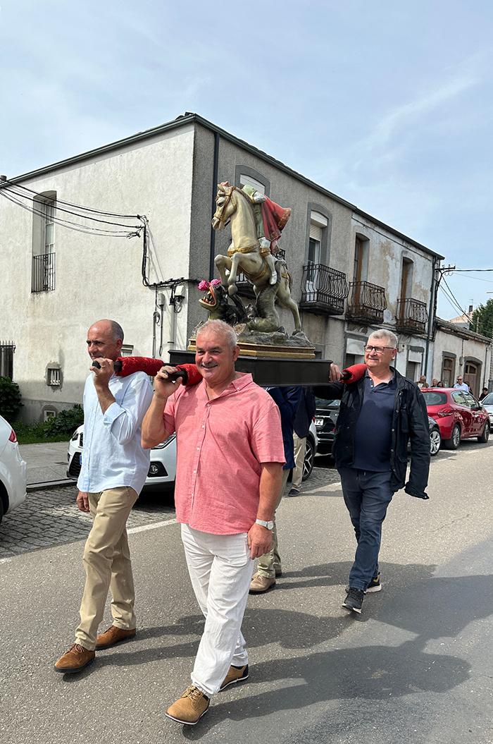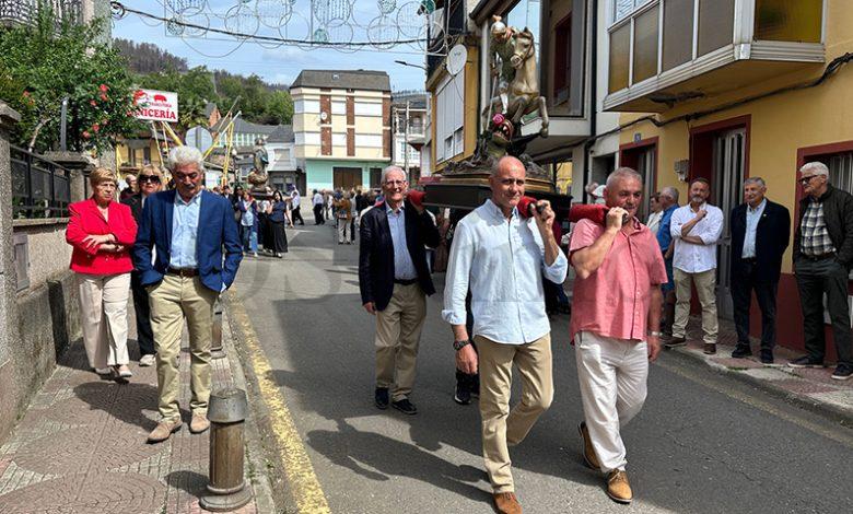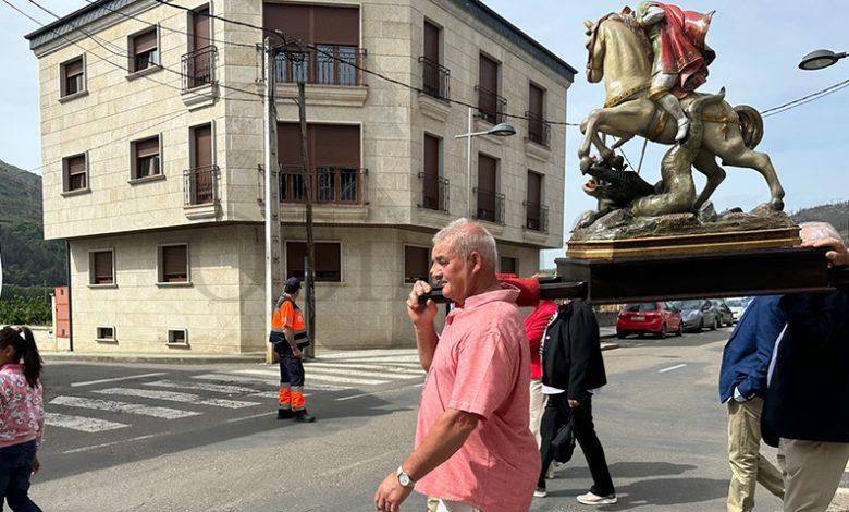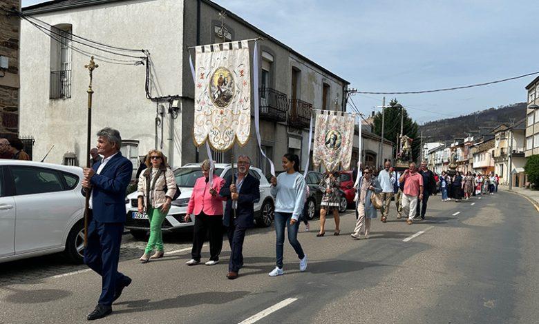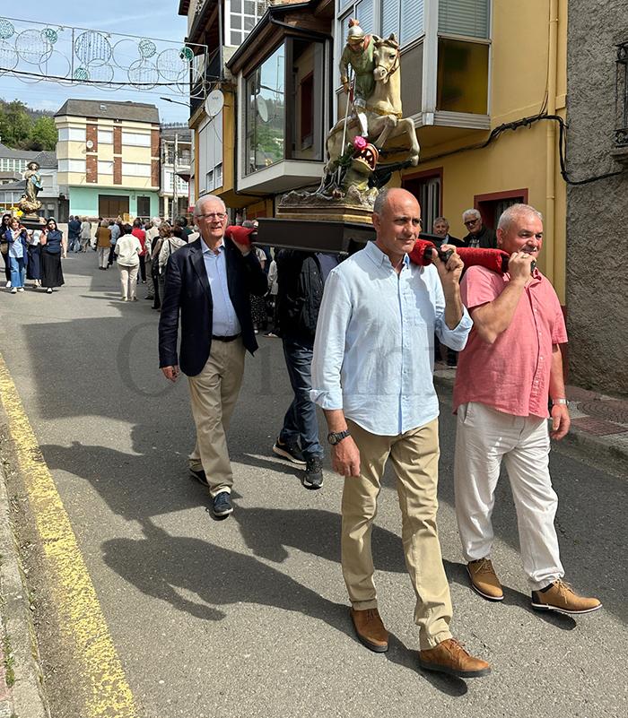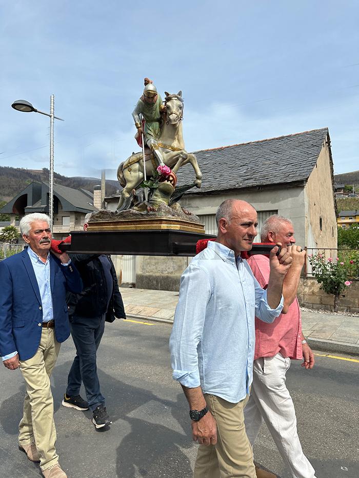 No mediodía deste xoves 23 de abril saía a comitiva da igrexa parroquial, encabezada polo párroco Javier Calvo e outros catro sacerdotes, entre eles Cristopher José Vásquez (párroco do Puente de Domingo Flórez), Jesús Álvarez (parroco do Barco) e Juan José Prieto (párroco de Sobradelo) e a charanga Río Leira que tamén amenizaba a sesión vermú. Percorrendo unha boa parte do pobo, os veciños acompañaron ás catro imaxes (San Xurxo, a Virxe, o neno Xesús e a Virxe nena) levadas por homes e mulleres.