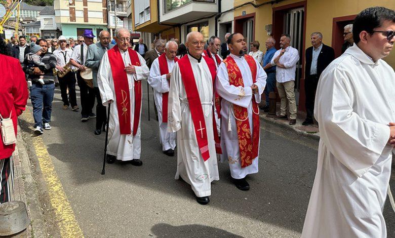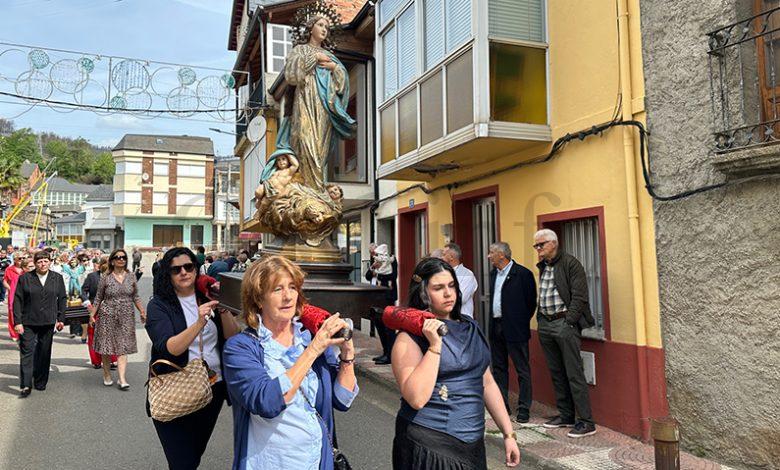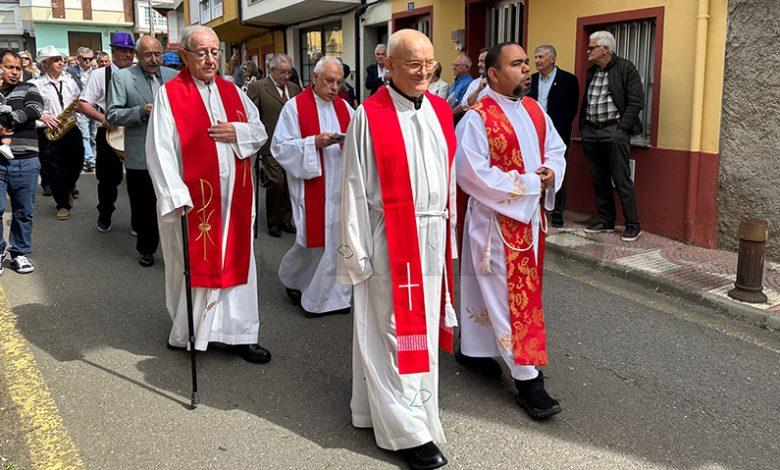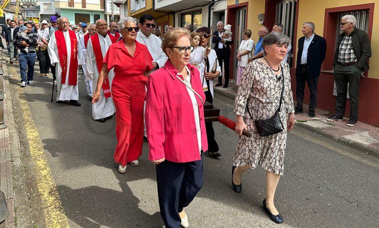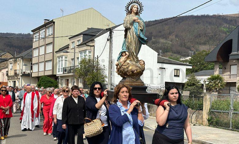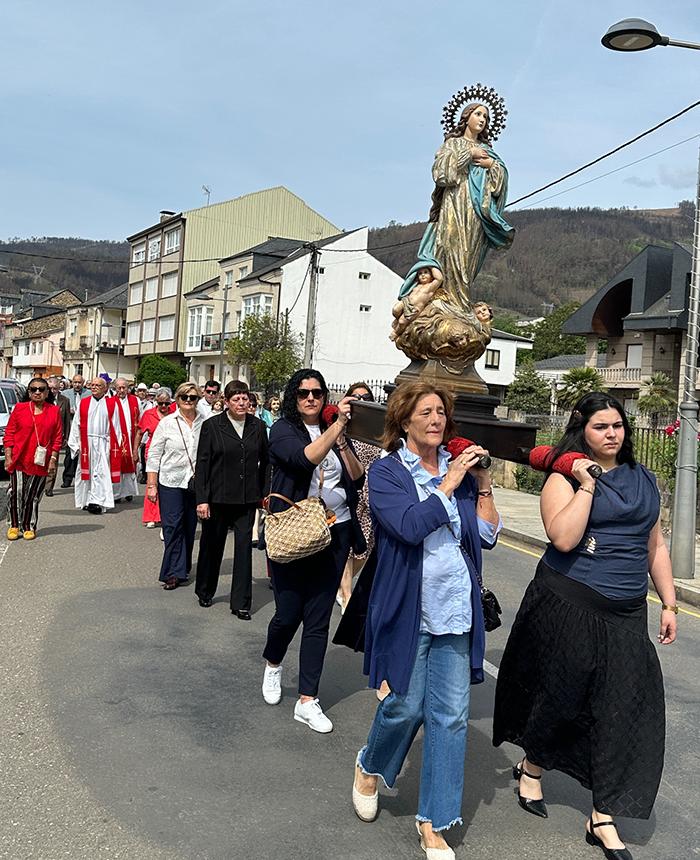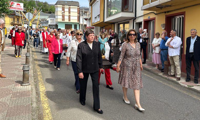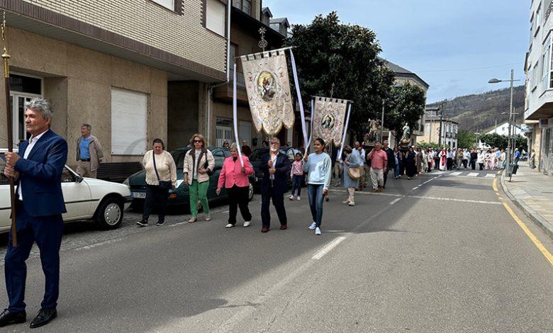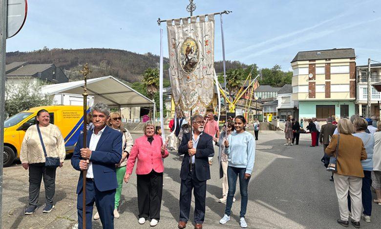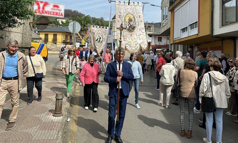 No mediodía deste xoves 23 de abril saía a comitiva da igrexa parroquial, encabezada polo párroco Javier Calvo e outros catro sacerdotes, entre eles Cristopher José Vásquez (párroco do Puente de Domingo Flórez), Jesús Álvarez (parroco do Barco) e Juan José Prieto (párroco de Sobradelo) e a charanga Río Leira que tamén amenizaba a sesión vermú. Percorrendo unha boa parte do pobo, os veciños acompañaron ás catro imaxes (San Xurxo, a Virxe, o neno Xesús e a Virxe nena) levadas por homes e mulleres.