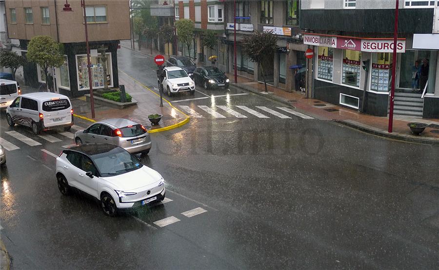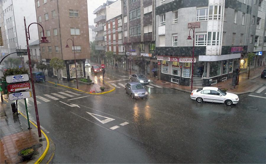 Contra as seis desta tarde e despois a partir das seis e cuarto a tormenta descargaba con moita chuvia e relámpagos e tronos na vila do Barco, sorprendendo a moitas persoas que nese momento transitaban pola vila.