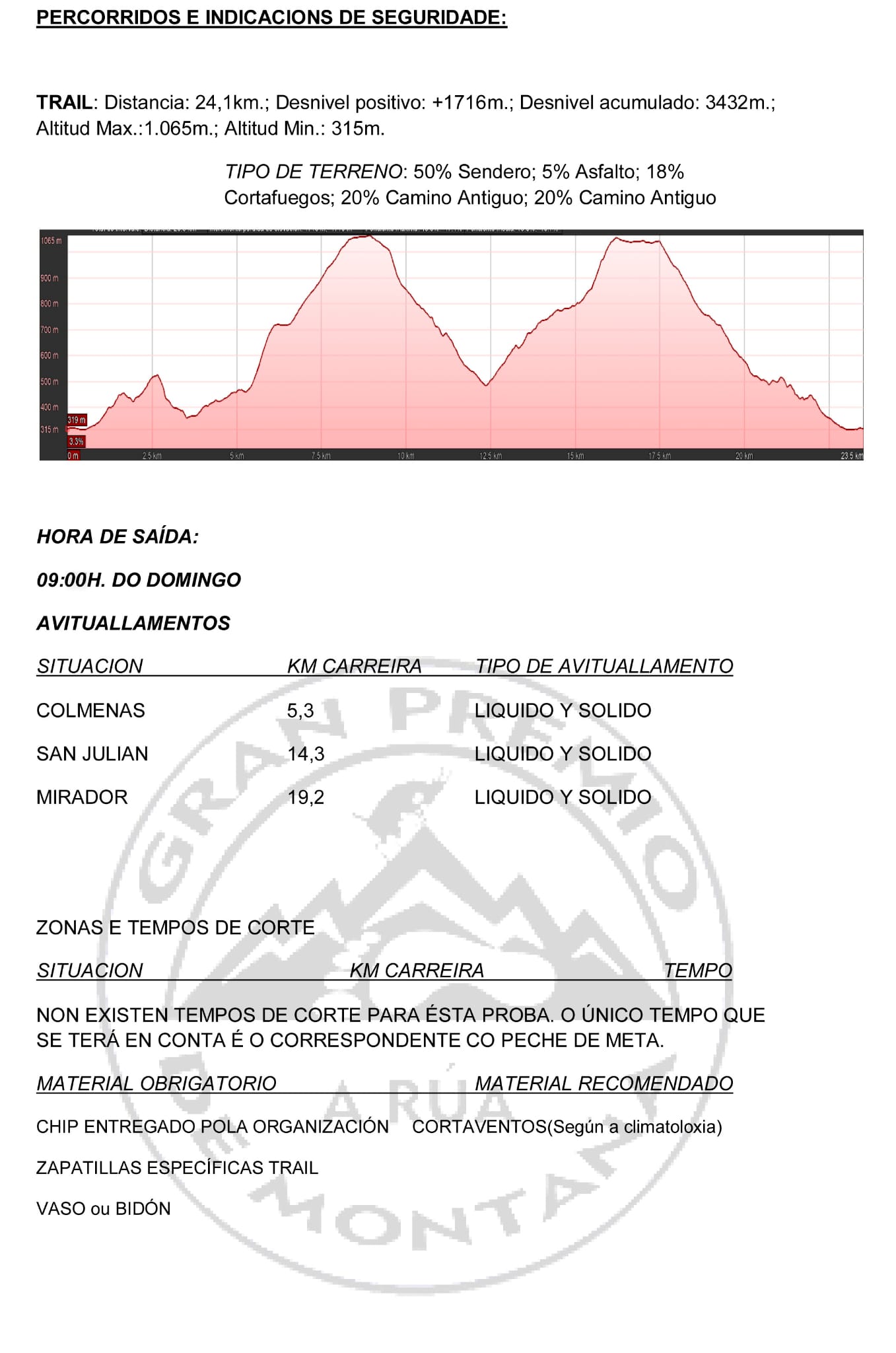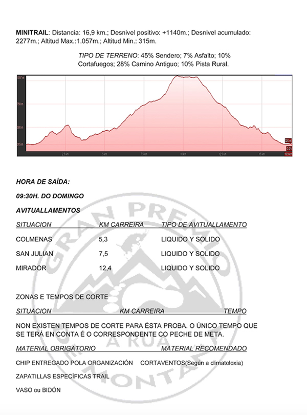 Nesta ocasión haberá un trail, de 24 km, que sairá ás 9 horas; e un mini trail de 17 km que sairá ás 9:30 horas.