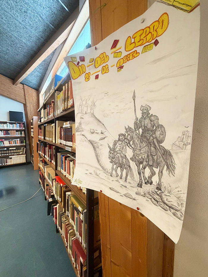 Facíao na biblioteca municipal, ata onde os cativos chegaban a pé dende o centro escolar acompañados polos docentes. Os primeiros en chegar eran os alumnos de Infantil que rapidamente collían libros das estanterías. Despois facíamo os de Primaria que traballaron sobre El Quijote.