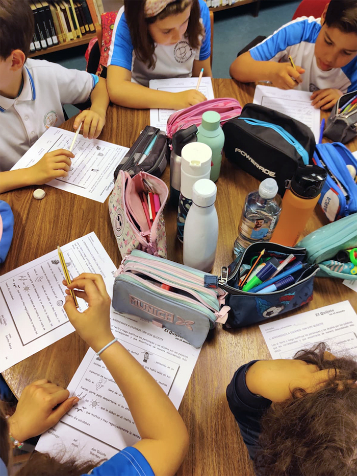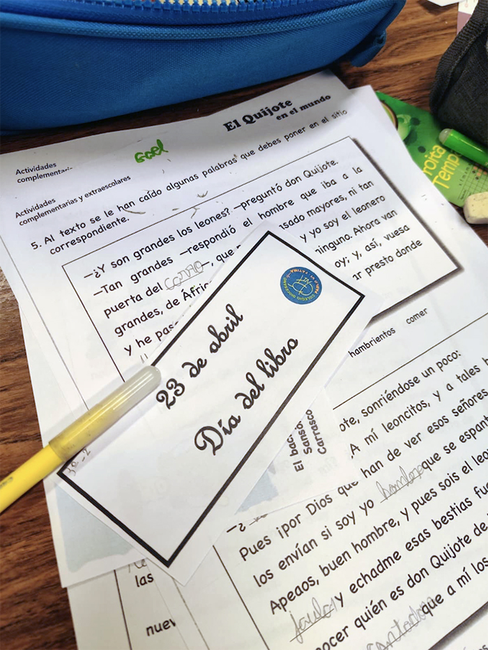 Os alumnos elaboraron marcapáxinas, investigaron sobre algunhas das aventuras do personaxe literario, colorearon caricaturas de Sancho Panza, Dulcinea, Quixote…