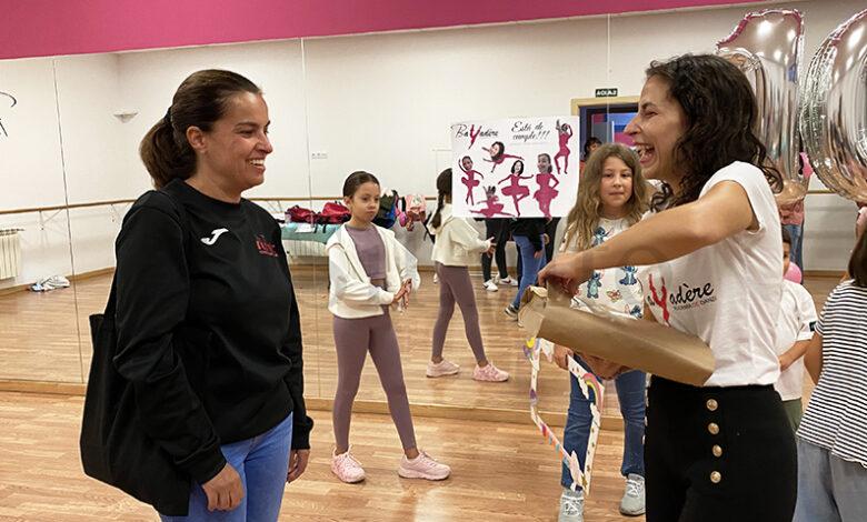 No local de ensaios, rodeada das nenas coas que tantas horas pasa e de amigos, a bailarina Nuria Reguera celebraba o aniversario da Academia de Danza Bayadère que abría as portas no Barco de Valdeorras hai dez anos.