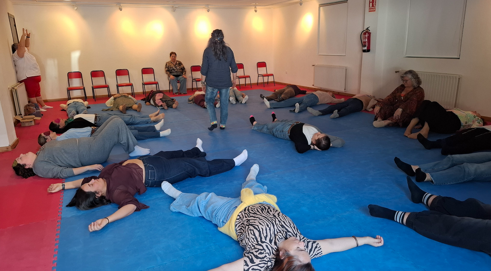 Tras unha pausa para compartir un café e socializar comezarían as actividades máis relaxadas da xornada. Dous obradoiros polos que pasarían todas as participantes divididas en dous grupos: un “Círculo de benestar”, impartido por Paula Santos; e unha “Viaxe interior”, impartida por Teresa Taboada.