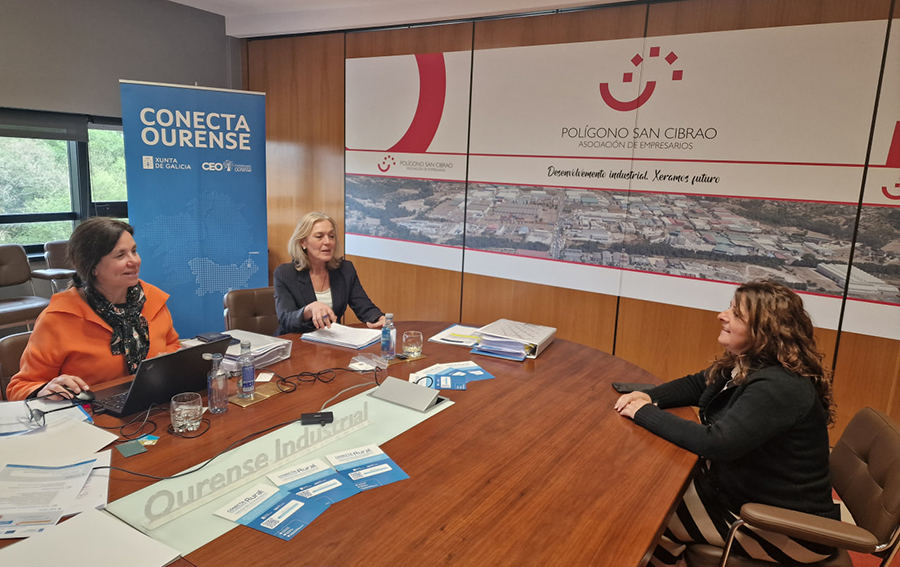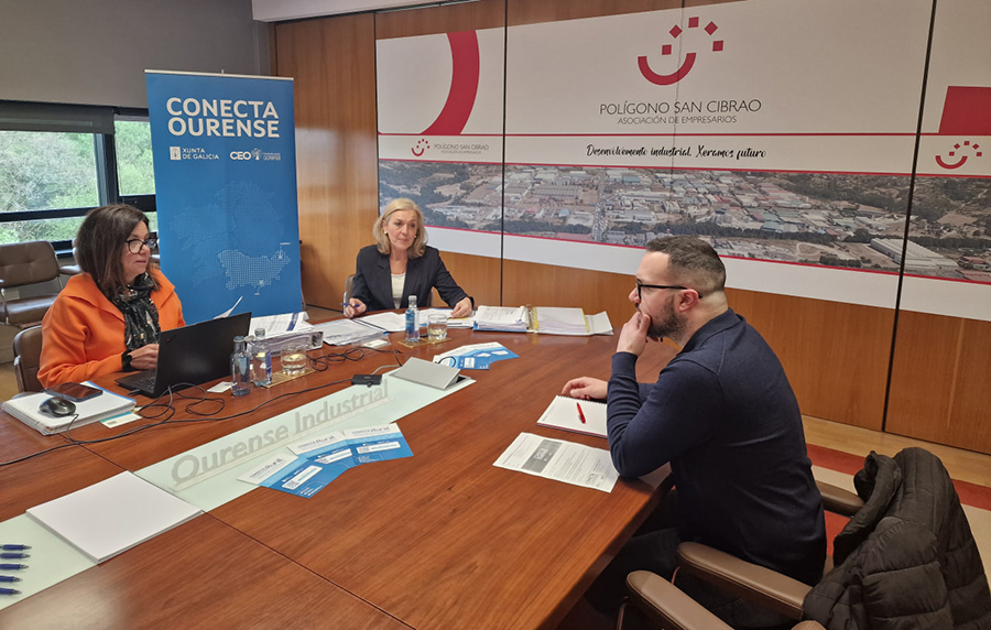Unha destas sesións levouse a cabo esta semana na Asociación de Empresarios do Polígono San Cibrao das Viñas, onde acudiron Carla García e María Pascual por parte da Oficina Económica do Igape, e María Fernández de Conecta Ourense.