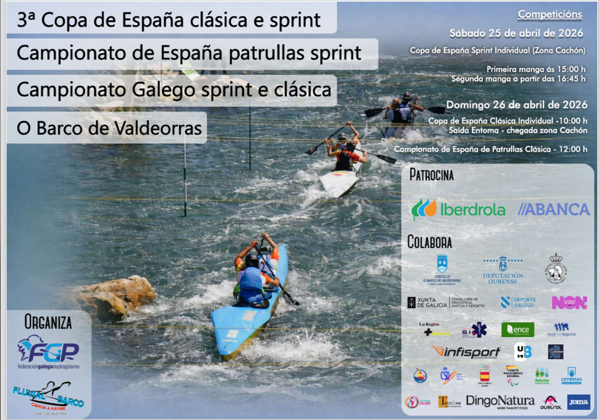 Na fin de semana do 25 e 26 de abril O Barco acollerá, un ano máis, varias probas nacionais de Descenso de Augas Bravas en distintas modalidades no río Sil. Así o sábado á tarde terá lugar a Copa España en modalidade sprint individual con dúas mangas (a primeira ás 15h. e a segunda ás 16:45h.) na zona do Cachón.