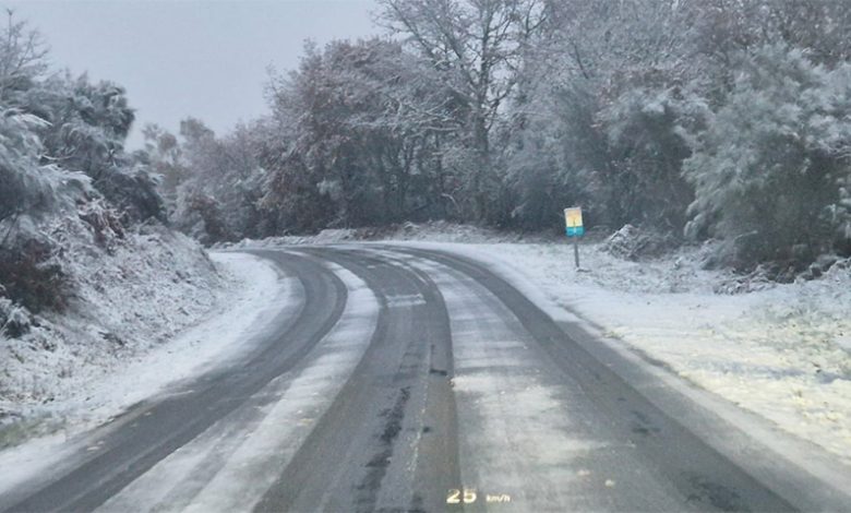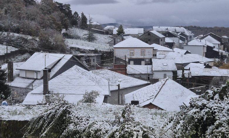 A baixada de temperaturas deixaba tamén cubertas de brando as montañas da comarca de Valdeorras. Nas Terras de Trives e outros puntos como Montederramo seguía nevando pola tarde, tendo que intervir o quitaneves.