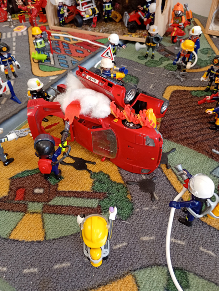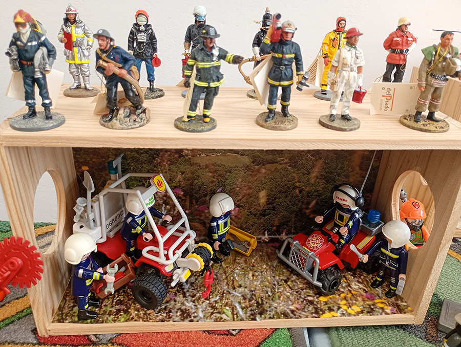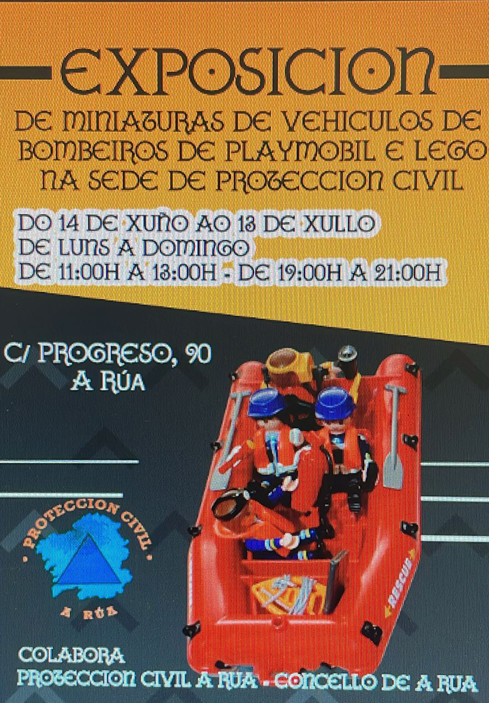 Con moitos deses obxectos de segunda man asiste a feiras e mercadiños e con outros organiza interesantes e vistosas exposicións. Unha de miniaturas de vehículos de bombeiros e outros servizos de emerxencia de Playmobil e Lego poderá verse na sede de Protección Civil da Rúa (r/ Progreso, 90, a carón do Centro Cultural Avenida) do 14 de xuño ao 13 de xullo, en horario de 11 a 13 e de 19 a 21 horas.