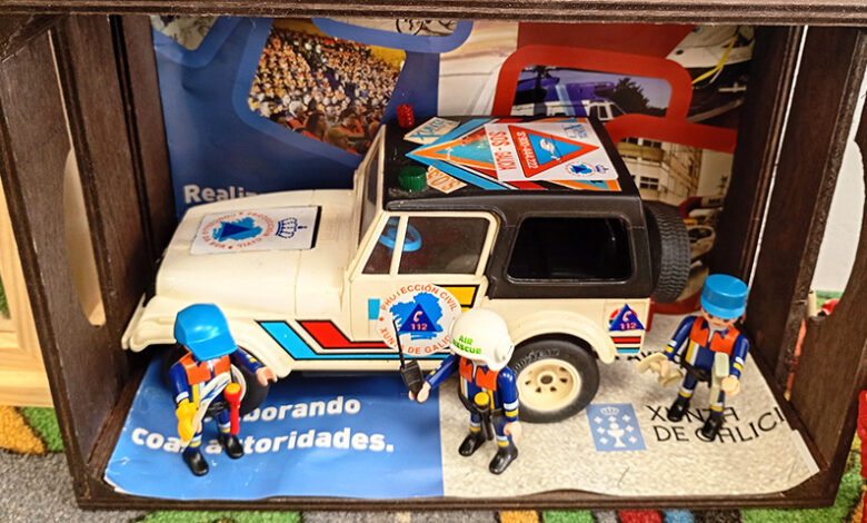 Con moitos deses obxectos de segunda man asiste a feiras e mercadiños e con outros organiza interesantes e vistosas exposicións. Unha de miniaturas de vehículos de bombeiros e outros servizos de emerxencia de Playmobil e Lego poderá verse na sede de Protección Civil da Rúa (r/ Progreso, 90, a carón do Centro Cultural Avenida) do 14 de xuño ao 13 de xullo, en horario de 11 a 13 e de 19 a 21 horas.