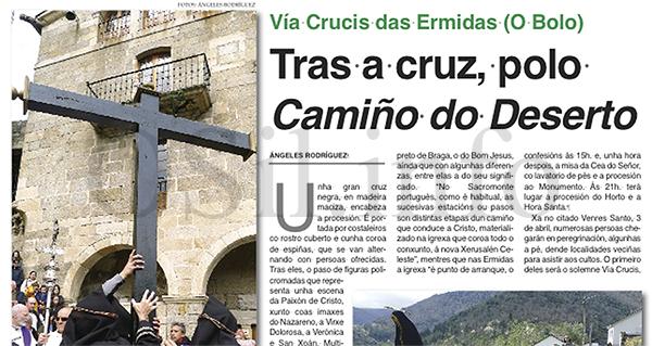 Dende o Venres de Dor ata o Domingo de Resurrección. Dende Valdeorras ata Ourense, pasando polas parroquias de Viana do Bolo, A Pobra de Trives ou O Carballiño. Un percorrido polas programacións relixiosas (misas, procesións e representacións) máis senlleiras e destacadas da provincia como o Vía Crucis e a Estoupa do Xudas nas Ermidas (O Bolo), a procesión dos caracois no Castro (O Barco) e Petín, a procesión da Soidade en Trives, a do Encontro en Santo Estevo (A Rúa),… Pero tamén gastronómicas como a Festa da Vitela, o Sábado Santo no Bolo.