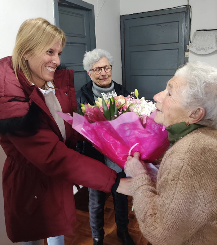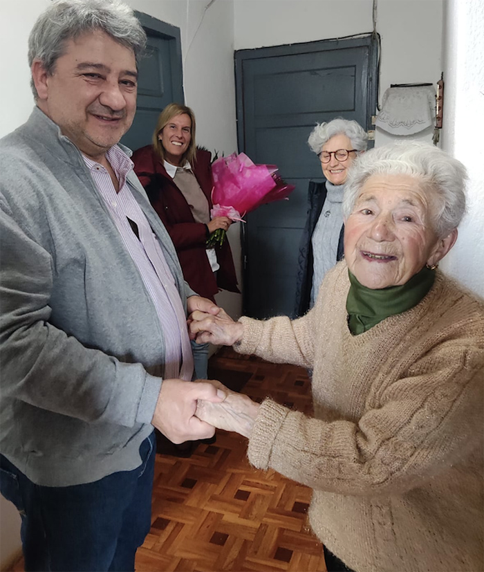 E na tarde deste domingo 8 de marzo, Día Internacional da Muller, o equipo de goberno do Concello de Ribas de Sil achegáuse ata Peites para entregar un ramo, en nome de todos os veciños e veciñas do concello, á muller máis maior do termo municipal, Jimena Mondelo Díaz, que hai poucos días cumpriu 102 anos.