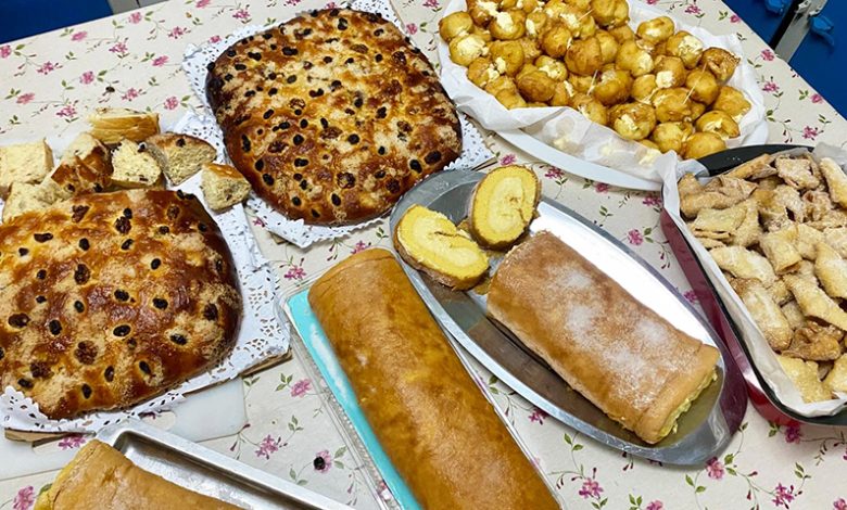 Nesta ocasión as preto de medio cento de socias asistentes eran sorprendidas con catro doces: brazo de xitano, pestiños, buñuelos e torta imperial.