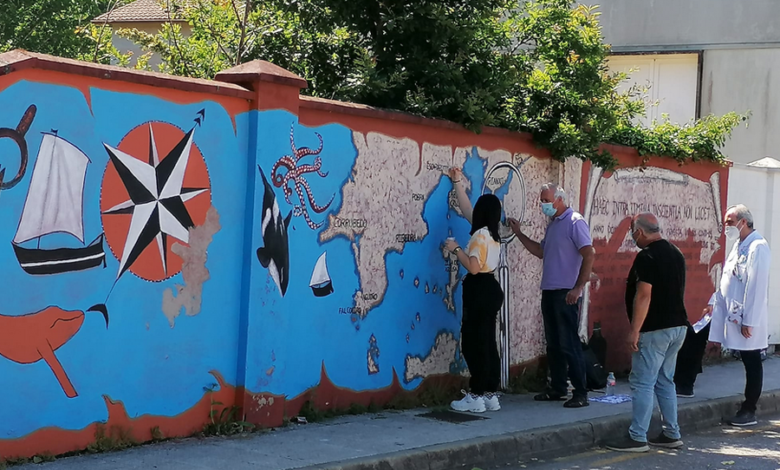 Un mapa de Arousa e dos seus mares. É o motivo central dun fermoso mural que o alumnado do IES Bouza Brey de Vilanova de Arousa realizaba nestes días para despedir o curso. Neste labor creativo e colectivo estaban guiados polo artista valdeorrés Gerardo Rodríguez Ramos “Chere” e polo saber clásico de Lorenzo Fraga.