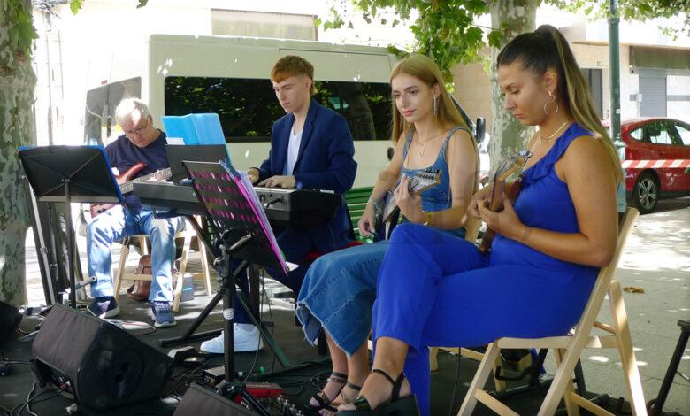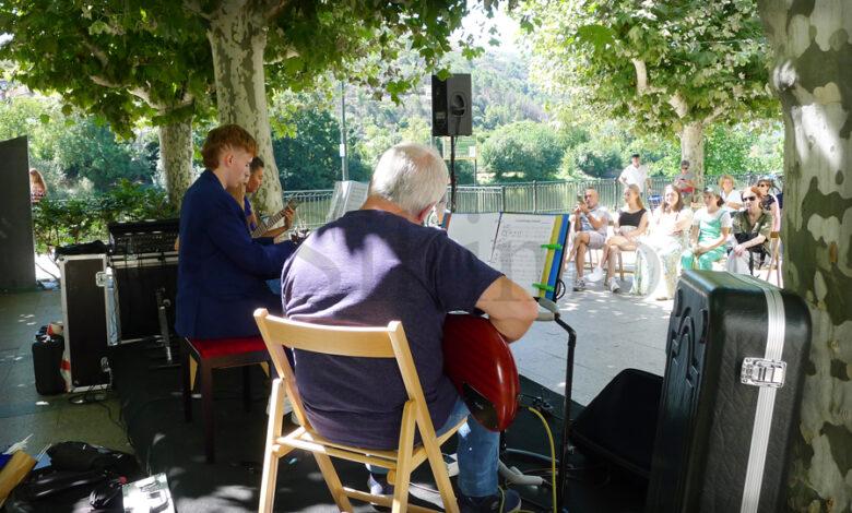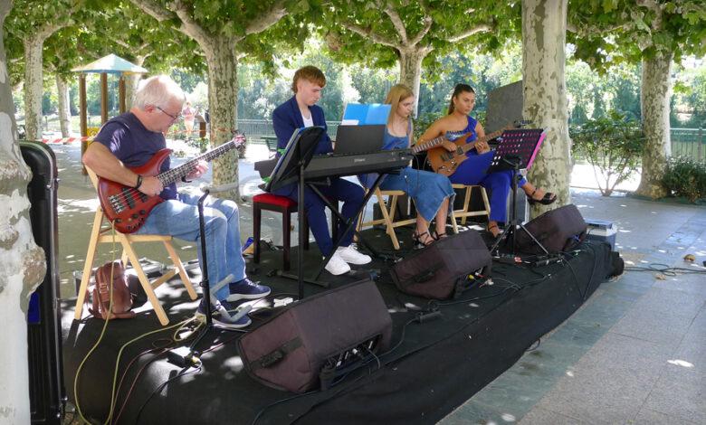 O Paseo do Malecón acollía neste mediodía unha nova cita do V Ciclo Terrasón no Barco. Nas proximidades da oficina de Correos actuaba Notazul, un grupo dedicado ao jazz e á improvisación, que está formado por alumnos e profesores do Conservatorio de Música do Barco.