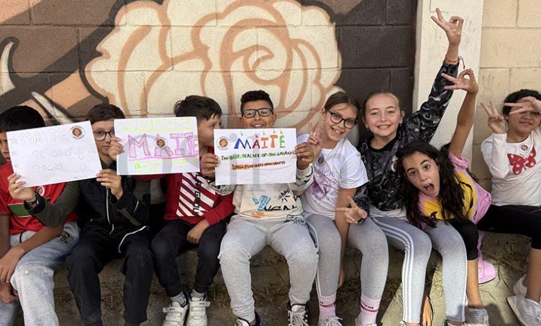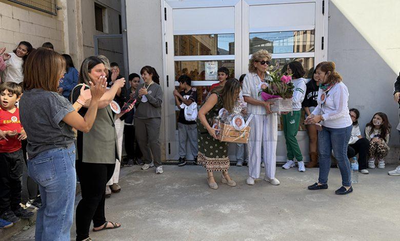 Novos proxectos para esta mestra que, no mediodía deste venres 26 de setembro, sentía a calor dos seus alumnos e compañeiros do centro (coa súa caricatura ao pescozo xunto á mensaxe ‘Adiós tensión, hola pensión’), que entre berros de ‘Maite, Maite’ facíanlle un pasillo para despois entregarlle un ramo de flores e unha cesta en sinal de agradecemento e cos mellores desexos.