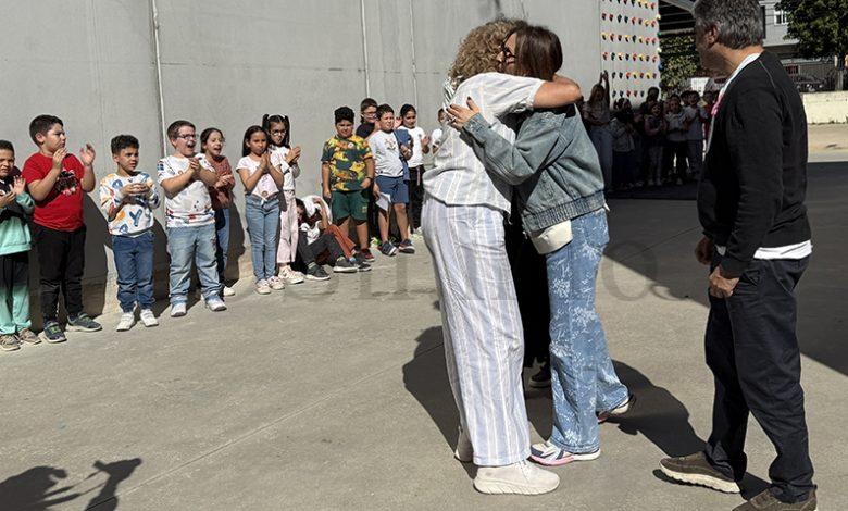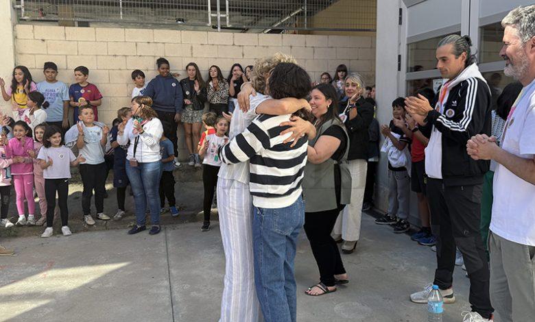 Entre aplausos, apertas, bicos, música e agasallos despedían no CEIP Julio Gurriarán do Barco de Valdeorras á que foi a sua profesora de inglés nos últimos 15 anos.