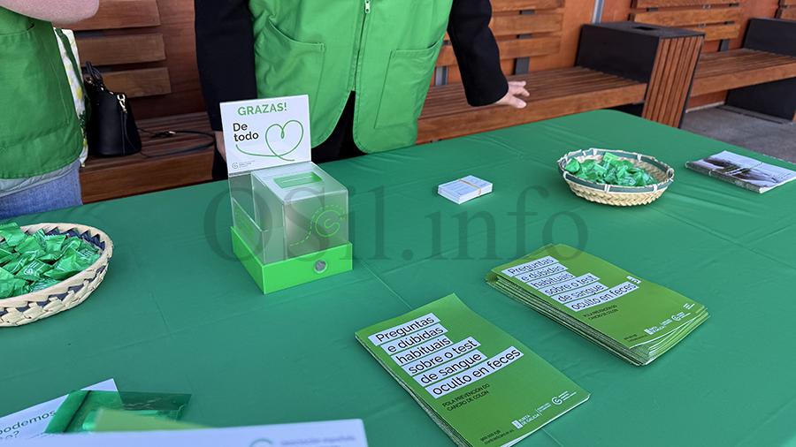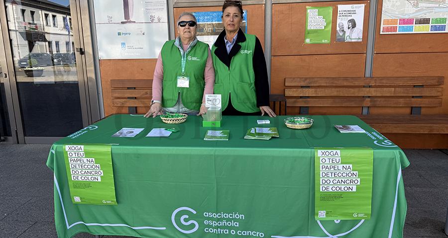 Para informar sobre o cancro de colon e como recoller a mostras para participar no cribado, a AECC Valdeorras saía á rúa na mañá deste martes 31 de marzo cunha mesa na praza do Concello.
