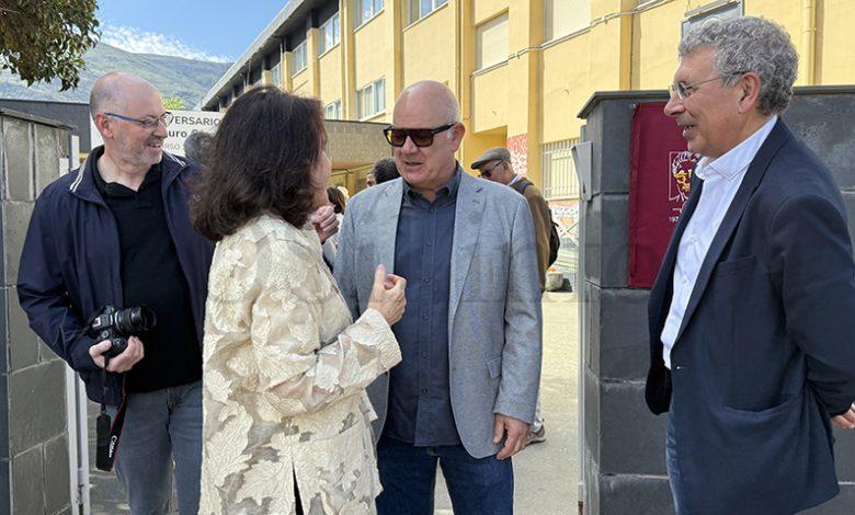 Compartindo protagonismo coa actual directora, Amparo Quiroga, estaban a primeira directora que tivo o instituto no ano 75, cando aínda non se chamaba Lauro Olmo, Amparo Folla; e outros dous ex profesores, Aurentino Alonso, alcalde do Barco e Eladio Santos, subdelegado do Goberno en Ourense. Xuntos descubrían a placa do aniversario á entrada do centro, o primeiro dos actos da xornada de celebración.