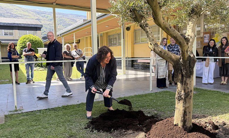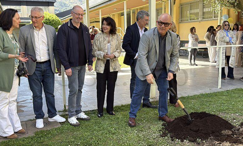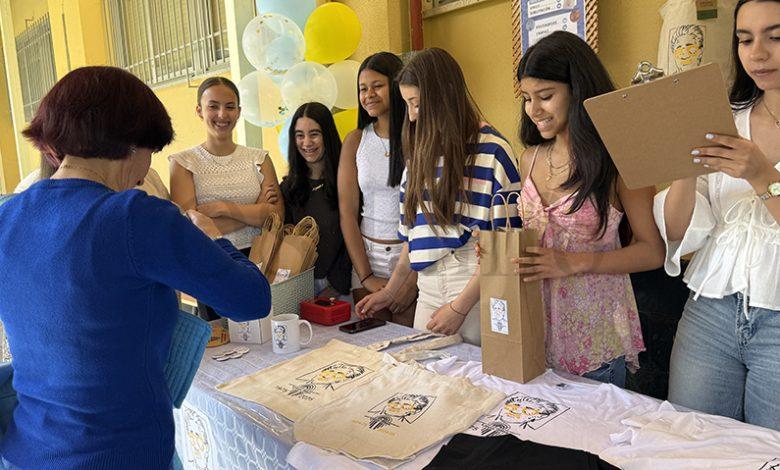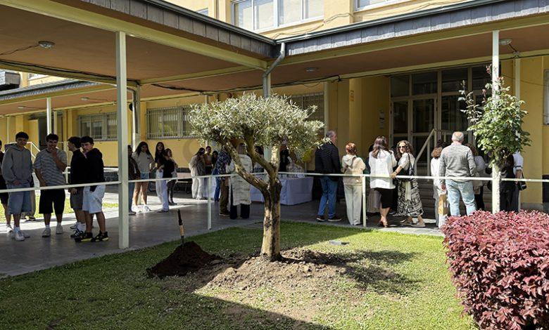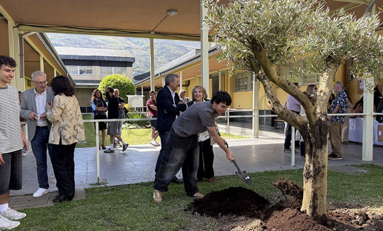 A seguinte era o simulacro (xa estaba plantado) de plantación dunha fermosa oliveira no patio central, co que moitos contribuíron botando paladas de terra. Xunto á entrada había un posto con camisetas, tote bags, tazas, chaveiros, chapas… (á venda para a axudar a financiar as excursións de de fin de curso) elaborados durante meses de traballo polos equipos da aula de Polos Creativos, funcionando a pleno rendemento para dar forma a moitos estes e outros elementos que se viron durante a celebración.