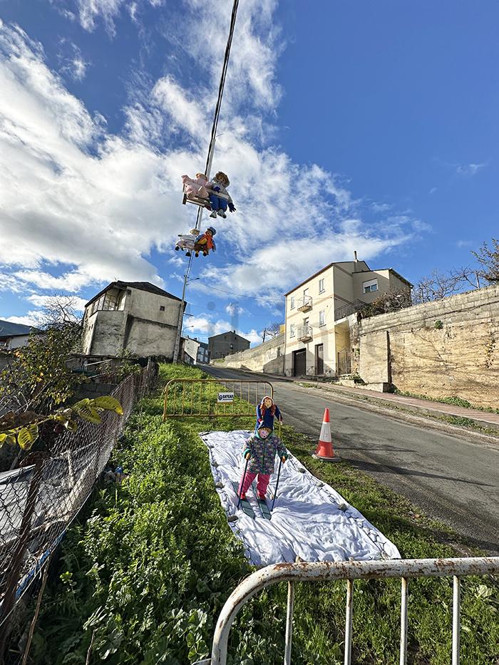 A veciñanza de localidade barquense de Veigamuíños está a traballar nunha fermosa e orixinal decoración navideña, entre a que se pode ver unha pista de esquí con telecadeira e esquiadores incluídos.