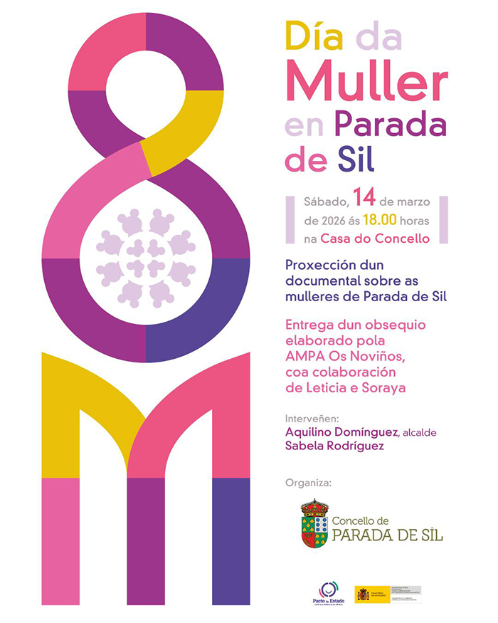 Un ano máis o Concello de Parada de Sil celebra o Día Internacional da Muller trasladando as actividades ao día 14. Están programadas distintas accións nas que participaron e se implicaron distintas persoas do concello para facelo máis participativo, a dicir do alcalde Aquilino Domínguez, que anima ás mulleres a “seguir defendendo os logros acadados para non voltar atrás impulsados pola ideoloxía de ultradereita de Vox e asumida polo PP”.