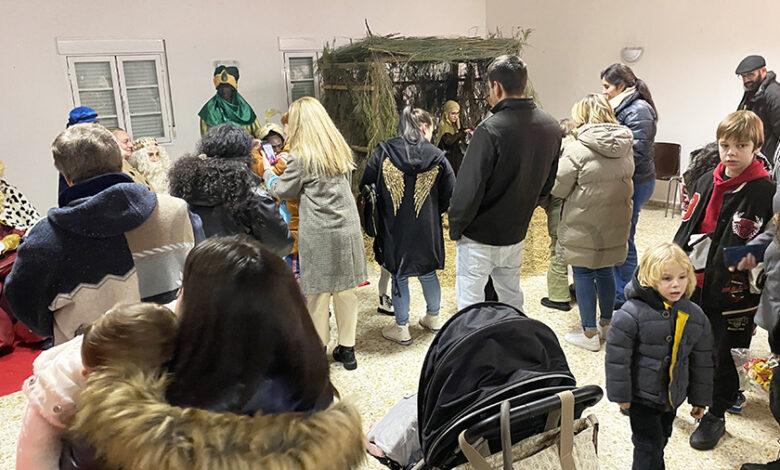 Así, na tarde deste domingo 5 de xaneiro as SS.MM. recibían aos cativos xa no propio Teleclub onde, tras render pleitesía ao neno Xesús no belén vivinte, atendían as petición dos cativos que un a un se ían achegando a eles, dándolles caramelos.