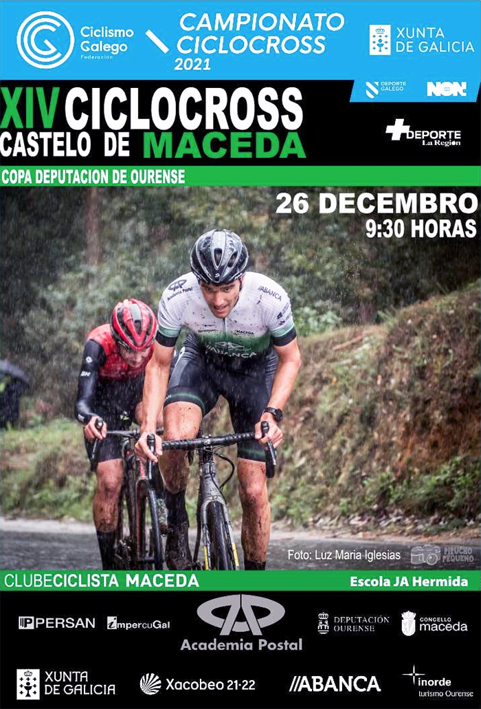 A competición de ciclismo volve esta fin de semana á provincia de Ourense. Preto de 300 deportistas procedentes de toda Galicia participarán o domingo, día 26 de decembro, no XIV Ciclocross Castelo de Maceda, proba pertencente á Copa Deputación e incluída no campionato galego desta modalidade.