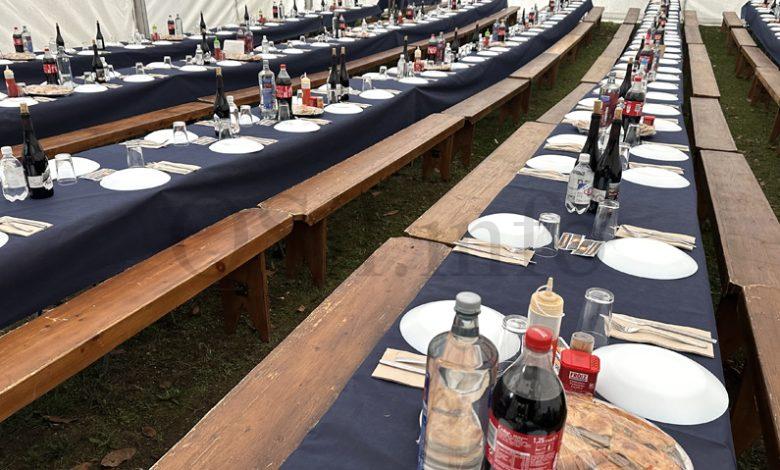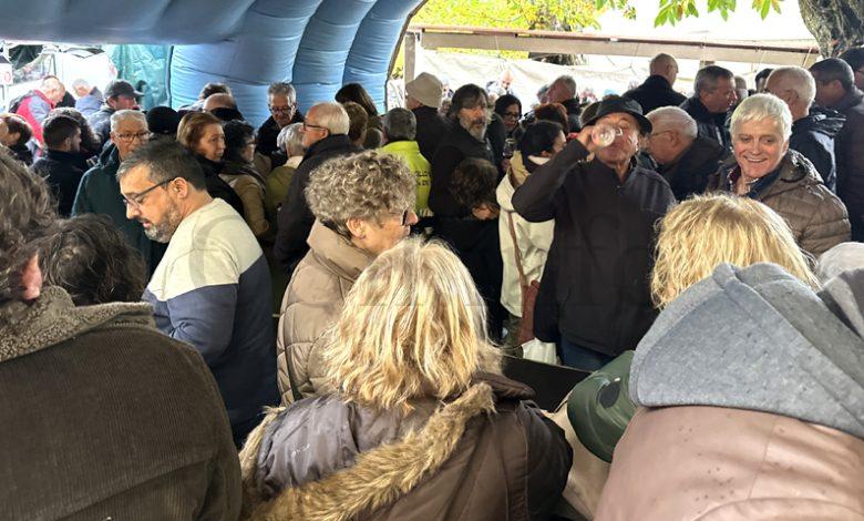 De forma paralela á pisa, poñíase en marcha nun souto próximo o Mercado Tradicional de Produtos, con gran diversidade de postos de gastronomía e artesanía: viños, queixos, chocolate, marmeladas, licores, aceite, doces… E, xa arredor das 14h., comezaba o xantar popular, nunha carpa instalada xunto ao mercado, cun delicioso menú (entrada de 15 euros) a base de cocido completo, lacón, cachucha, androlla, tenreira, orella e morro, acompañados de bica, viño mencía/godello da D.O. Ribeira Sacra, auga, café e chupitos. Esgotábanse as entradas e o xantar reunía a un total de 250 persoas.
