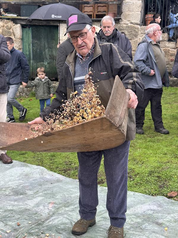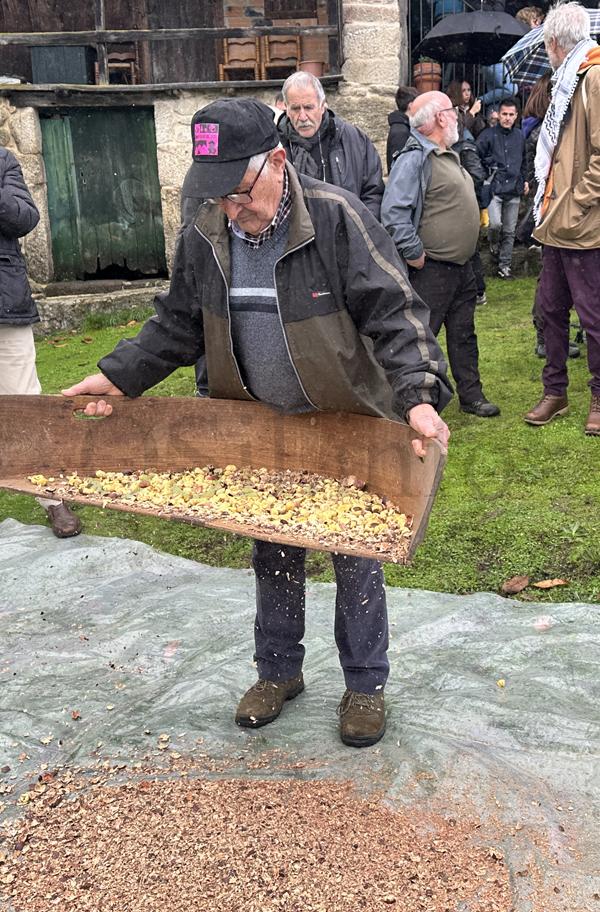 A continuación, os sacos íanse baleirando para dar paso ao abandoxado, outra fase na que se lle quitaba a segunda pel á castaña. Este froito, xa limpo, depositábase de seguido en cestos de madeira para que puidera ser degustado polos asistentes.