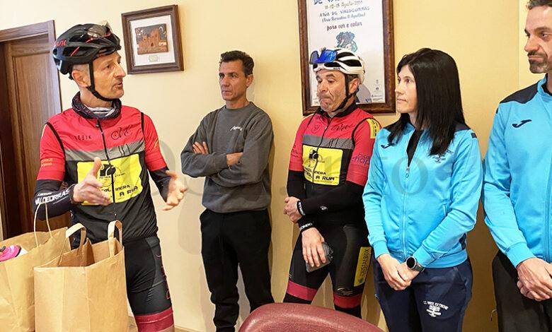 Para logralo, Pedro estará acompañado por ciclistas do C.C. Bike Extreme, contando ademais con xente de reforzo. Un grupo que chegaba á Rúa na tarde deste venres 4 de abril e, tras xantar na Adega Alán de Val, achegábase ara o Concello onde era recibido por membros da corporación municipal. No salón de Plenos, recibían agasallos tanto por parte do Concello como de dous membros do Club Ciclista Valdeorras.