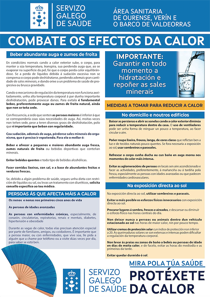 Desde a Consellería de Sanidade lembran á cidadanía unha serie de consellos que poderán ser moi útiles para estes días de calor extrema.