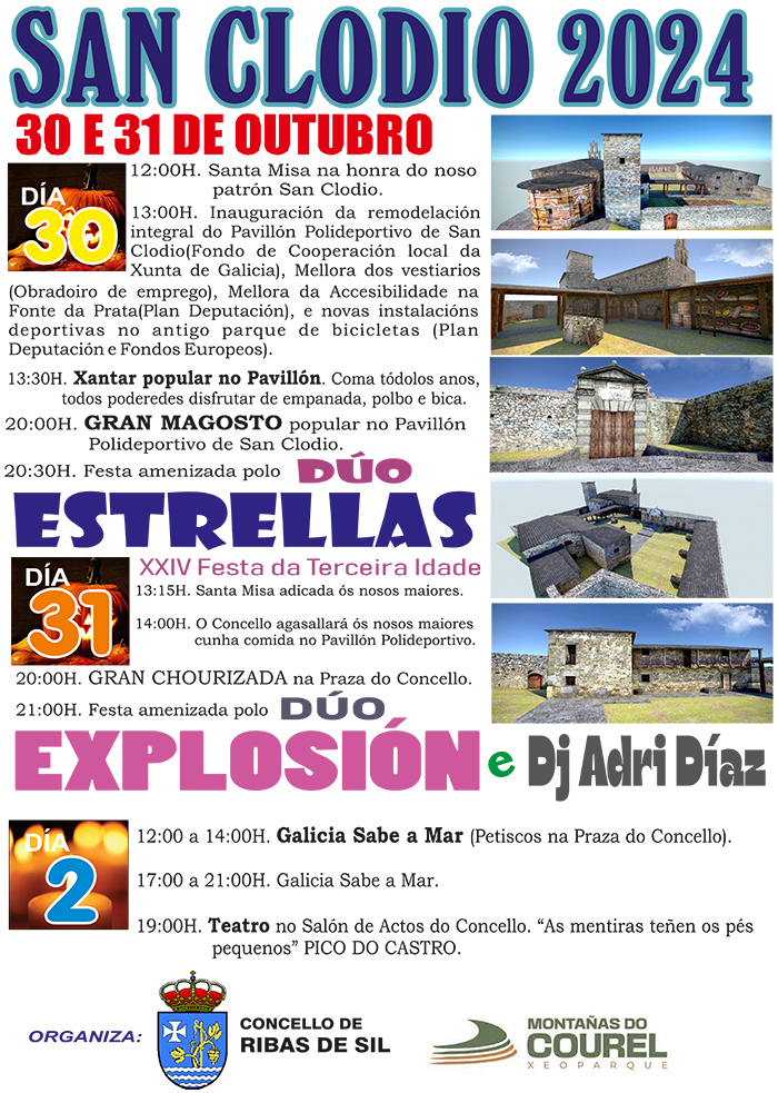 Cun completo programa celebrarán no Concello de Ribas de Sil as Festas de San Clodio 2024 os días 30 e 31 de outubro.