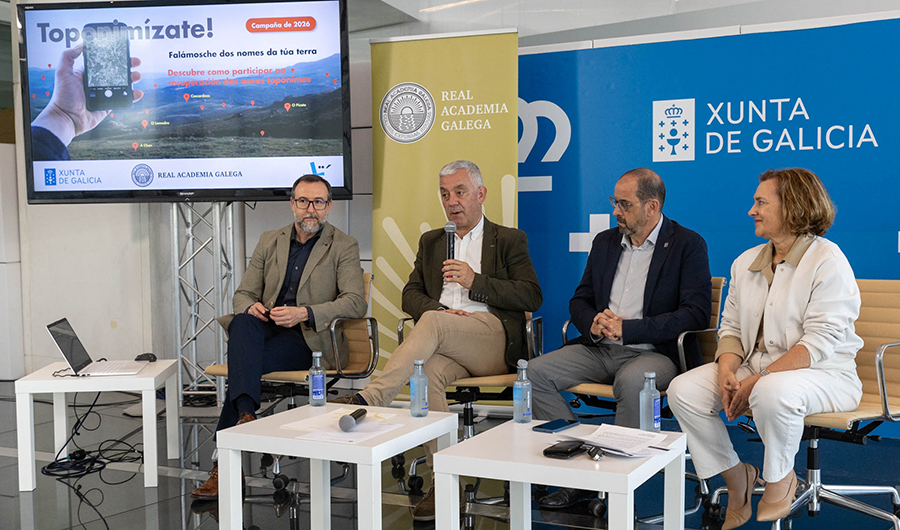 A campaña de divulgación da toponimia galega Toponimízate. Falámosche dos nomes da túa terra volverá percorrer o país neste ano 2026 para concienciar a poboación galega do gran valor cultural dos nosos nomes de lugar e promover a súa recolla colectiva e salvagarda a través da plataforma colaborativa Galicia Nomeada. A iniciativa, coordinada pola Real Academia Galega e financiada pola Secretaría Xeral da Lingua da Xunta de Galicia, visitará nesta novena edición doce novos concellos co fin de sumar persoas e entidades aos máis de 4.300 colaboradores que xa levan introducido neste espazo na Rede preto de 110.000 nomes montes, terras, fontes, camiños, regos, penedos ou praias, entre outros microtopónimos.
