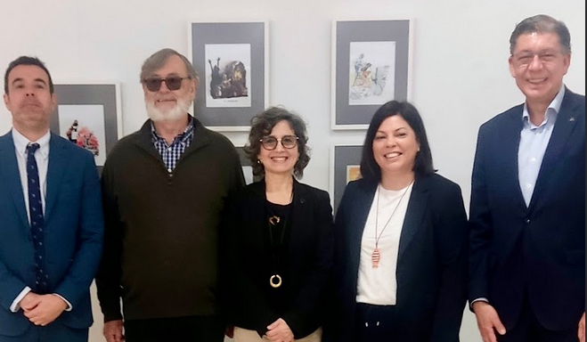 A exposición «Arte e humor. O enxeño de Antonio Mingote» inaugurábase esta mañá na Sala de Exposicións do Edificio Santa Leonor da Pobra de Trives e que contou coa presenza de Patricia Domínguez Barja, alcaldesa da Pobra de Trives; José Luis Vidal, concelleiro de Cultura da Pobra de Trives; Mateo Alonso San Román, coordinador institucional de ABANCA en Ourense, e Beatriz Fernández-Anguiano, coordinadora institucional de Afundación en Ourense e Lugo.