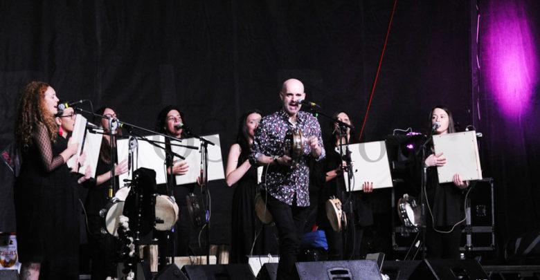 Xabier Díaz e As Adufeiras de Salitre nun concerto no Barco./ Foto: Carlos G. Hervella.